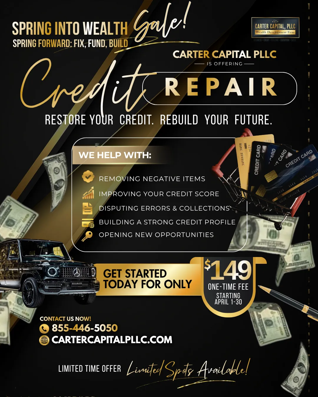 Carter Capital PLLC ™ | Copyright ©2026 | All Rights Reserved Carter Capital PLLC cannot and does not make any guarantees about your ability to get results or earn any money with our ideas, information, tools, or strategies. Nothing on this page, any of our websites, or any of our content or curriculum is a promise or guarantee of results or future earnings, and we do not offer any legal advice. Any financial numbers referenced here, or on any of our sites, are illustrative of concepts only and should not be considered average earnings, exact earnings, or promises for actual or future performance. Use caution and always consult your accountant, lawyer or professional advisor before acting on this or any information related to a lifestyle change or your business or finances. You alone are responsible and accountable for your decisions, actions and results in life, and by your registration here you agree not to attempt to hold us liable for your decisions, actions or results, at any time, under any circumstance. This site is not a part of the Facebook website or Facebook Inc. Additionally, This site is NOT endorsed by Facebook in any way. FACEBOOK is a trademark of FACEBOOK, Inc.